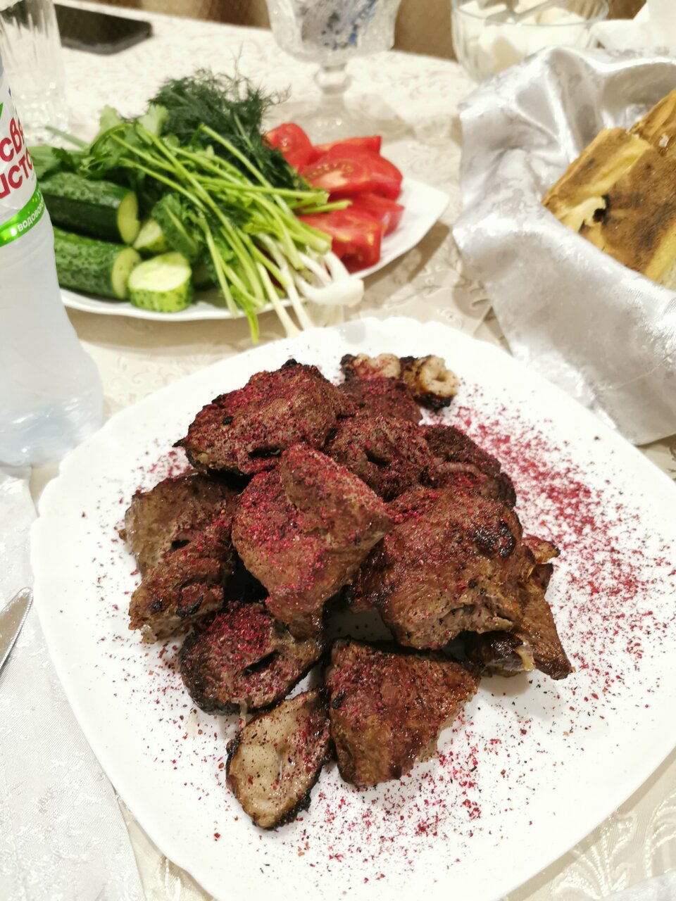 — и меню: за вечер принесли очень много блюд — все было просто восхитительно ❤ Особенно понравился шашлык и хлеб
