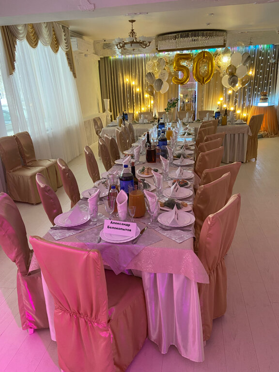 Отличный банкетный зал, чистый, опрятный, удобное расположение входов и выходов в основной зал а также столов и стульев. Не примитивное оформление блюд, чувствуется что приготовлено с душой, очень вкусно и сытно. Отличный ведущий и соведущая, красивые, талантливые и самое главное опытные. Шустрые, молодые, красивые официантки. Приятные, приветливые, дружелюбные владельцы данного заведения!